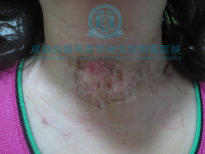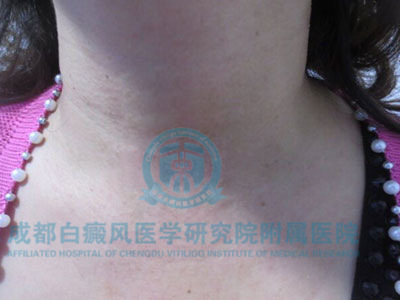 (一个月的治疗后,颈部白斑开始大量生成黑色素)