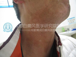 (初诊时,胡先生颈部的白斑明显,处于稳定)