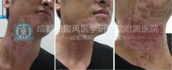 经过半年多的系统治疗,胡先生颈部、嘴角、下颌、头皮处的白斑全部消失,患病部位的颜色与周围正常皮肤的颜色无差别。