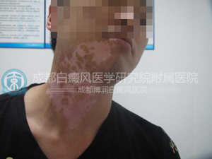 “爸爸,你的脖子上是什么?好吓人!班里小朋友都嘲笑我......”仅因儿子这句话,家住四川宜宾的胡先生重新走上白癜风求医路。经多方打听,胡先生得知成都白癜风医学研究院附属医院治疗白癜风效果非常好,好多白癜风患者在成都博润康复了。2014年6月5日,在老婆的陪伴下胡先生来我院就诊。经过半年多的系统治疗,胡先生颈部白斑已经彻底消失了。