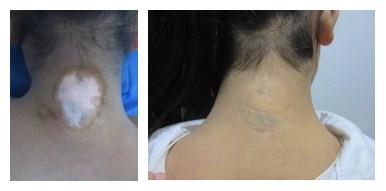 接诊的是林永祥主任,通过系统的检查,并结合雯雯对病情的描述,经过全面分析,分型分诊分类,为雯雯制定了个性化治疗方案。先用中药药剂属性疗法为其调理体内微循环,同时配合传统中药养生气疗,控制白斑的扩散,再配合308nm准分子治疗进行治疗。直接作用于白斑基底部,刺激黑色素生长,高效安全。并叮嘱雯雯在饮食中的一些注意事项。我院也为雯雯治疗提供了援助基金。