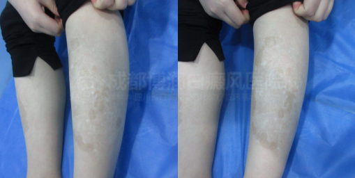 现病史:患者诉17前发现双腿白斑,曾在当地医院检查治疗,外用:不详,口服:不详,自购仪器照射、效果不佳,于今日来院就诊。