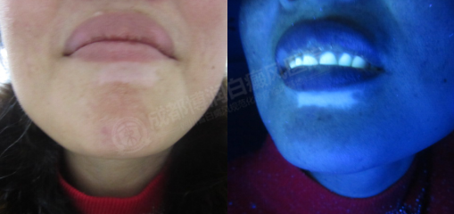 wood灯:嘴角色素脱失