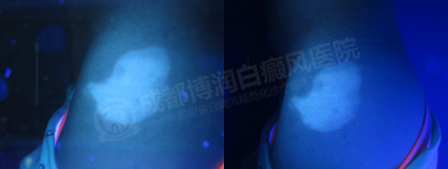 6、 Wood:背部、左侧髂棘、右侧胸前等色素脱失40-100%。