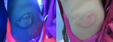 结合智能308,精准掌控能量和药量,直接有效对抗白癜风部位!待白癜风稳定,再使用表皮移植术,植入活性黑色素细胞,刺激酪氨酸酶活性,全面治疗白斑!现在的小患者基本康复,后续准备抗复发治疗,促进全面康复!
