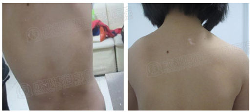 患者背部出现白斑时,家长曾带孩子去往当地医院治疗,本以为寻常的疹子过敏,却随着白斑的扩散让家长慌了手脚,四处求医,后来经检查确诊为白癜风。