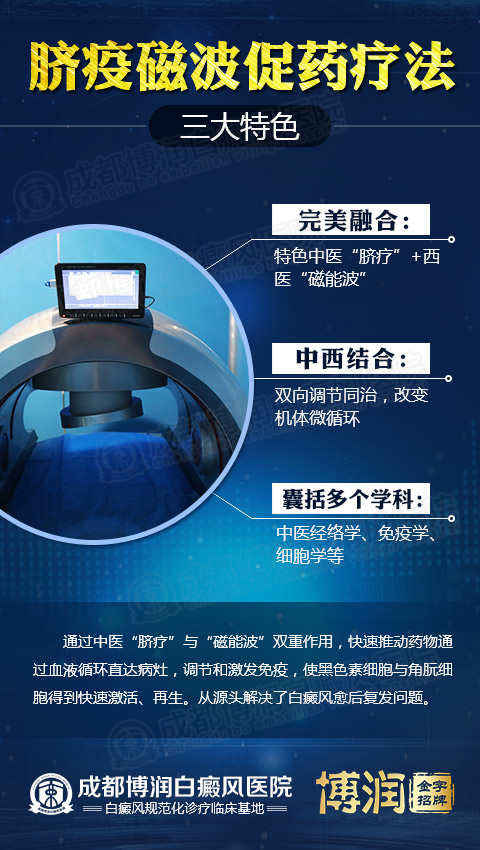 在2017年5月20日,四川中医药信息学会色素专委会成立大会暨学术交流大会中,经中医名家的交流探讨发现脐疫•磁波促药治疗对青少年儿童白癜风临床治疗中有着良好的效果。